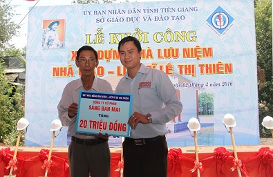 sáng 2-4-2016, tại ấp bà bèo, xã mỹ phước tây, tx.cai lậy, tỉnh tiền giang, sở giáo dục và đào tạo tiền giang đã tổ chức lễ khởi công xây dựng nhà lưu niệm nhà giáo - liệt sĩ lê thị thiên.