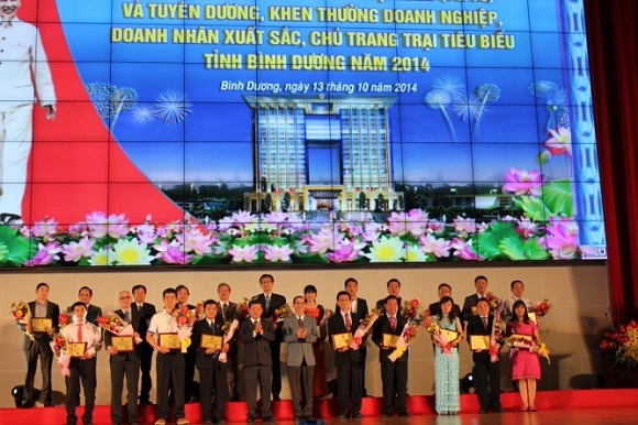 Chiều 13-10, UBND tỉnh Bình Dương đã tổ chức lễ kỷ niệm ngày Doanh nhân Việt Nam 13-10 và tuyên dương, khen thưởng các doanh nghiệp, doanh nhân, chủ trang trại tiêu biểu tỉnh Bình Dương năm 2014.