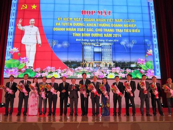 TGĐ SBM – thứ 3 từ bên trái trong Lễ ra mắt BVĐ Thành lập Liên Đoàn Doanh nghiệp Bình Dương (13/10/2014)