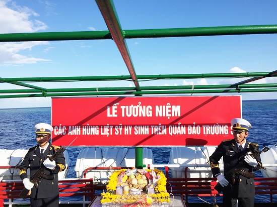 Ngày 27/4, tại Khu vực Đảo Len đao, cách đảo Gạc Ma của Việt Nam khoảng 5 hải lý, bị Trung quốc chiếm đóng trái phép từ năm 1988 trong sự kiện bi tráng 14/3/1988, Đoàn công tác đã thả neo tàu 996 và làm Lễ tưởng niệm các Anh hùng Liệt sỹ hy sinh trong sự nghiệp bảo vệ quần đảo Trường sa. Trong không khí trang nghiêm và xúc động, các thành viên trong đoàn đã thành kính mặc niệm, thả hoa, lễ vật xuống biển tưởng nhớ các Liệt sỹ đã hy sinh trong trận chiến Gạc ma năm 1988. Vòng hoa cứ trôi dần về phía đảo Gạc ma, nơi các Anh ngã xuống như chứng giám cho tấm lòng của CBCS và nhân dân luôn luôn nhớ đế các Anh. Các Anh hy sinh nhưng luôn luôn sát cánh cùng đồng đội hôm nay bảo vệ vững chắc Trường Sa.
