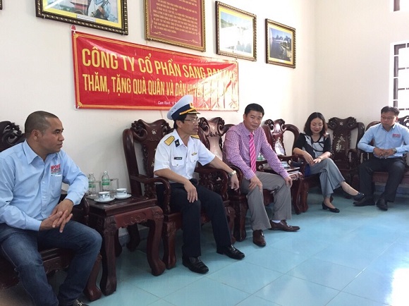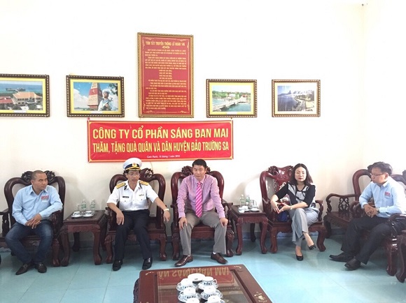 Đón đoàn, Đại tá Nguyễn Viết Thuân, Chủ tịch huyện Trường Sa trân trọng cảm ơn lãnh đạo và CBCNV của SBM đã nhiều năm liền quan tâm động viên quân và dân đang ngày đêm bảo vệ Trường Sa- một phần lãnh thổ thiêng liêng không thể tách rời của Tổ Quốc. Đây là lần thứ hai trong năm 2015 SBM đi thăm và tặng quà cho quân và dân Trường Sa. Thay mặt SBM, Ông Trần Thành Trọng gửi tới quân và dân Trường Sa món quà Tết là 100.000.000 Đồng và mong lãnh đạo huyện đảo chuyển đến tận tay CBCS và thân nhân trực tiếp làm nhiệm vụ trên quần đảo Trường Sa ; chúc quân và dân Trường sa năm mới dồi dào sức khoẻ, bảo vệ vững chắc chủ quyền Tổ Quốc. Đại tá Nguyễn Viết Thuân đã thông báo cho đoàn những diễn biến gần đây trên vùng biển Trường Sa và quyết tâm của toàn thể lực lượng trên đảo , bảo vệ vững chắn quần đảo Trường Sa. Đoàn đã đi viếng các anh hùng liệt sỹ hy sinh tại Trường Sa và thăm tàu hộ vệ tên lửa hiện đại HQ011- Đinh Tiên Hoàng.