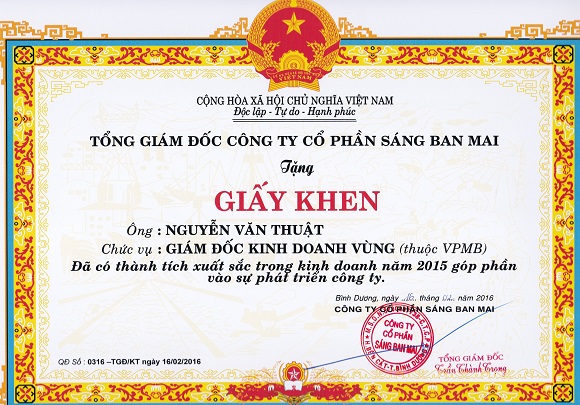 Ngày 18/2/2016 Tổng Giám Đốc SBM đã thăm VPMB nhân dịp đầu xuân Bính Thân. TGĐ đã khen thưởng và biểu dương anh Nguyễn Văn Thuật – Giám Đốc Kinh Doanh Vùng vì đã có thành tích bán hàng xuất sắc năm 2015 góp phần vào sự phát triển của công ty với phần thưởng là giấy khen và 100 triệu đồng. Trong không khí rộn ràng những ngày đầu xuân TGĐ SBM chúc VPMB trong năm 2016 tiếp tục phát huy tinh thần đoàn kết, nổ lực để đạt doanh thu 60 tỷ đồng.