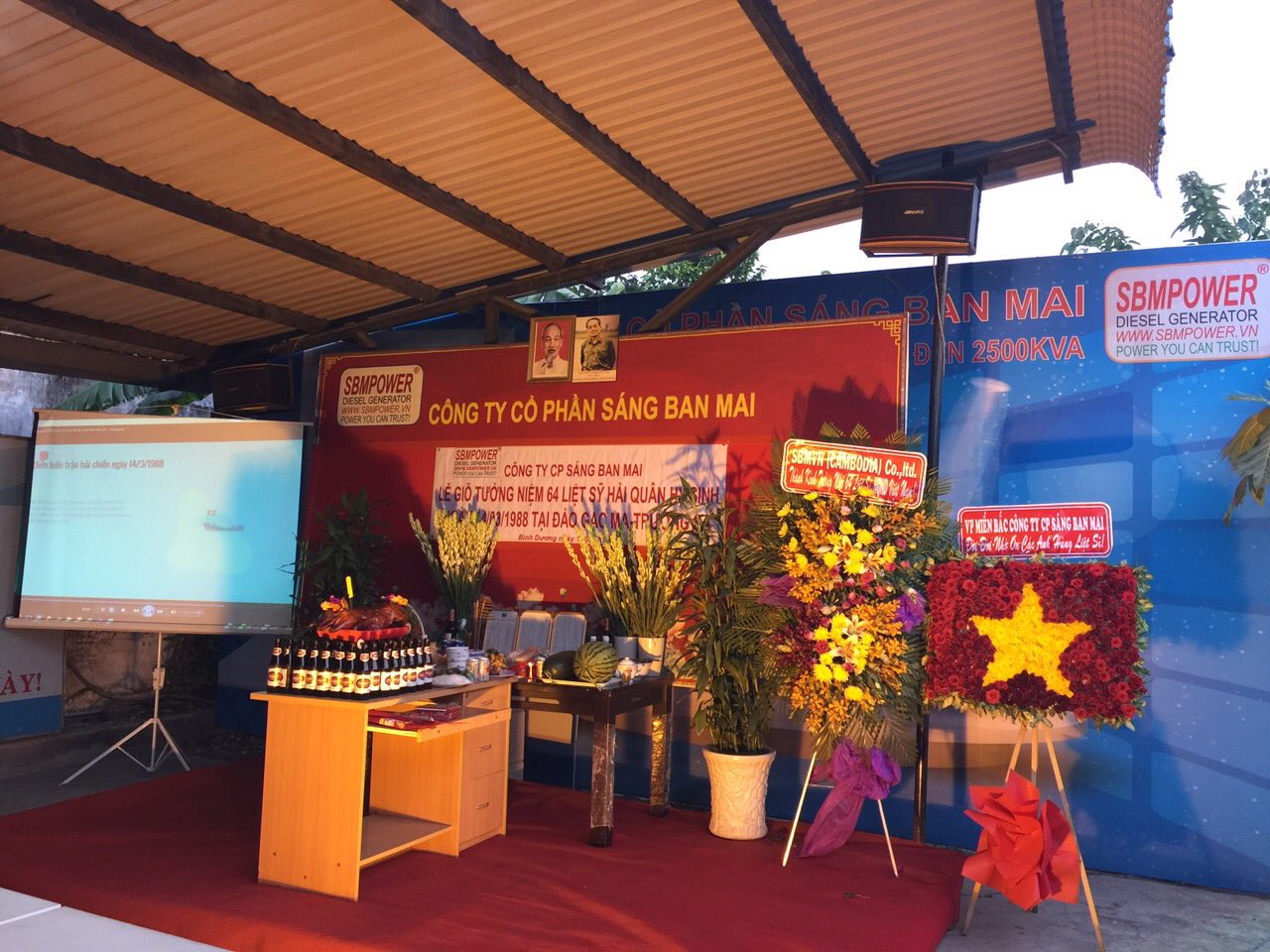 Trong niềm kính trọng, tiếc thương và biết ơn sâu sắc, vào lúc 17h ngày thứ hai - 14/03/2016, tại Nhà máy SBMPOWER®, Tổng Giám đốc - ông Trần Thành Trọng và tập thể CB-CNV SBM cùng người thân, bạn bè đã tổ chức trang trọng Lễ giỗ tưởng niệm 64 Liệt sỹ HQND Việt Nam hy sinh ngày 14/03/1988 tại Khu vực đảo Gạc Ma, Colin, Len Đao thuộc quần đảo Trường Sa của Việt Nam. Lễ giỗ đã được đóng góp và chuẩn bị chu đáo của tất cả CBCNV trong hệ thống SBM, kể cả tại VP Miền Bắc và Công ty trực thuộc SBM VN (Cambodia). Đặc biệt tham gia Lễ giỗ lần này, còn có chỉ huy Trung đoàn Hải quân 251- BTL Vùng 2 Hải quân.