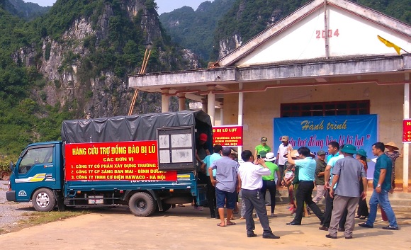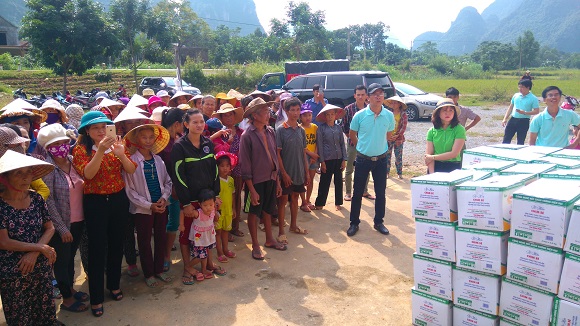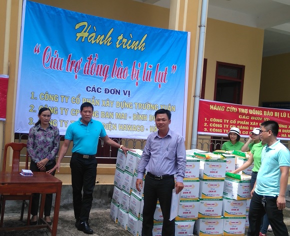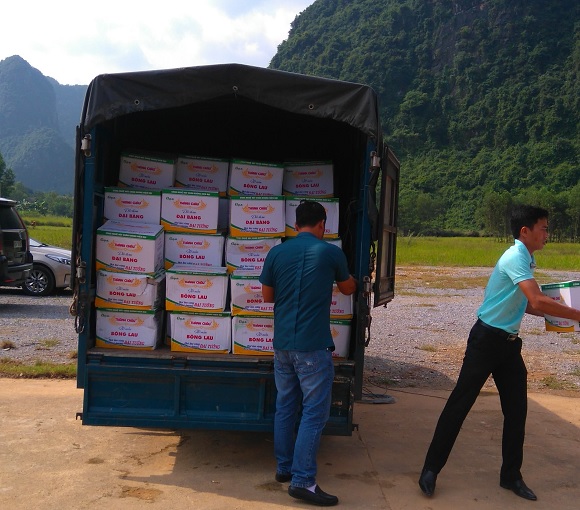 Hưởng ứng lời kêu gọi của Ủy Ban Trung ương Mặt Trận Tổ Quốc Việt Nam về việc cứu trợ, hỗ trợ đồng bào Miền Trung đặc biệt là Quảng Bình khôi phục sản xuất, ổn định cuộc sống sau cơn lũ vừa qua, công ty CP Sáng Ban Mai đã tổ chức đoàn cứu trợ đồng bào bị lũ lụt tại Quảng Bình đại diện đoàn cứu trợ là anh Trần Văn Hòa nguyên là giám đốc Kinh doanh Vùng.