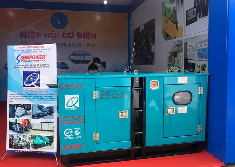 Năm nay, do ảnh hưởng của Covid19, không gian triển làm hạn chế nên SBM chỉ trưng bày máy nhỏ nhất là 33KVA dùng động cơ ISUZU cực kỳ êm, gọn gẽ. Khách đứng bên cạnh khen máy sao êm thế.