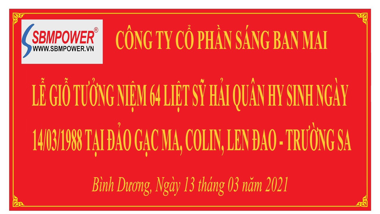 Từ năm 2013, Lễ giỗ tưởng niệm 64 CBCS Hải quân nhân dân Việt Nam hy sinh anh dũng ngày 14/3/1988 để bảo vệ chủ quyền biển đảo Tổ quốc đã trở thành truyền thống hàng năm của CBCNV Công ty CP SÁNG BAN MAI.