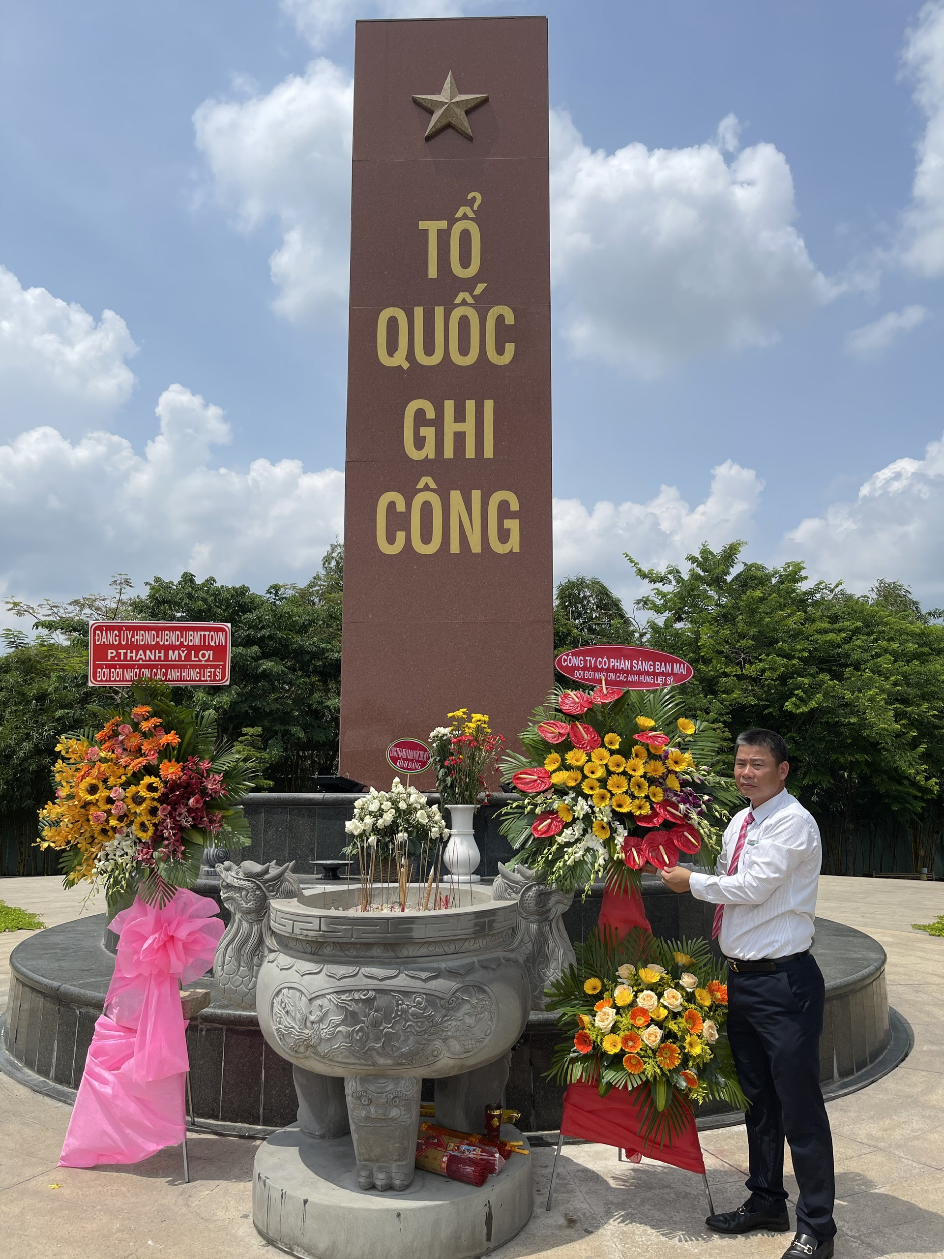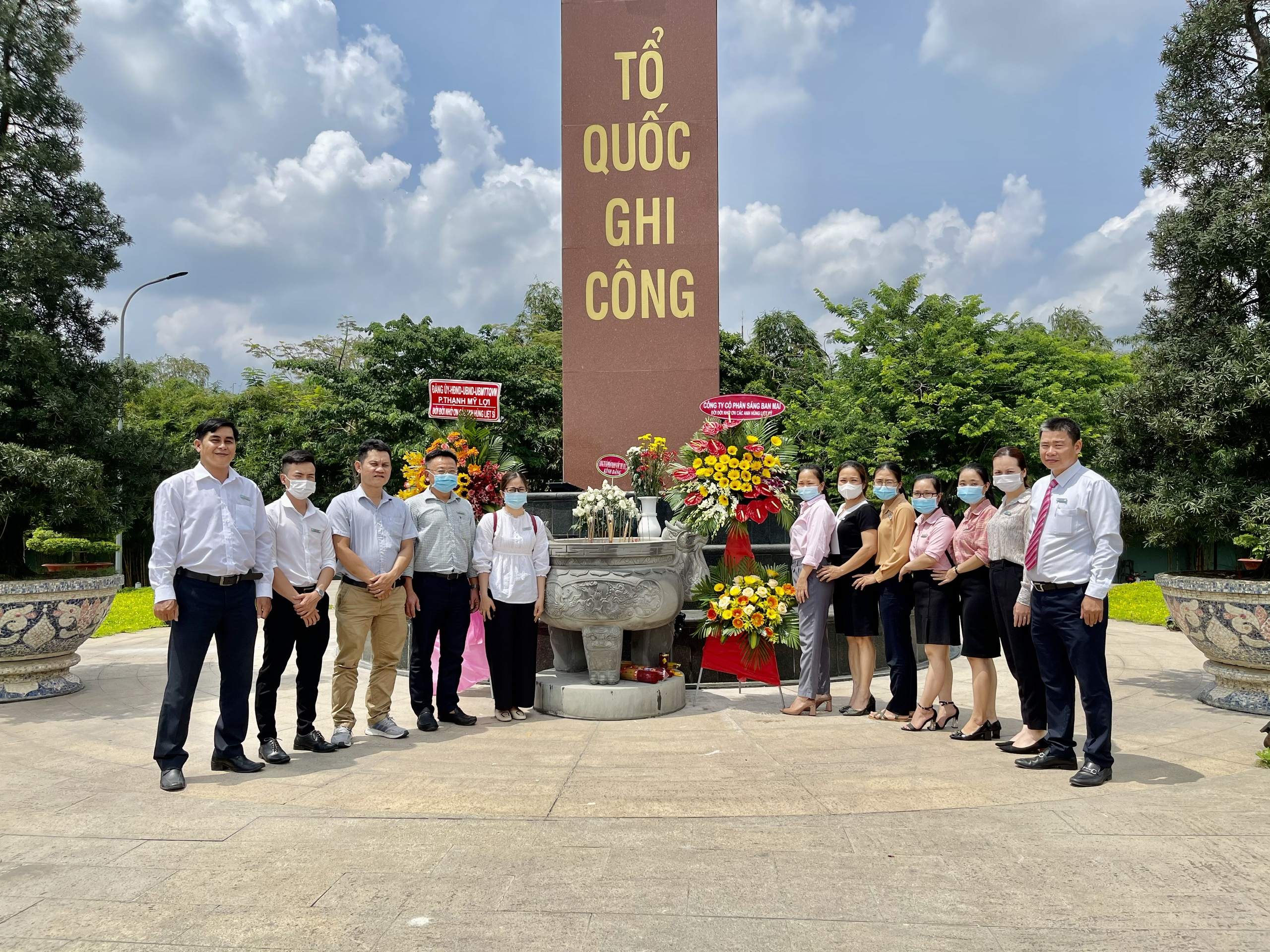 CB-CNV Công ty CP Sáng Ban Mai do Tổng Giám Đốc Trần Thành Trọng dẫn đầu thành kính dâng lên các Anh những nén hương và những bông hoa tươi thắm với lòng biết ơn sâu sắc. Mong các Anh phù hộ cho đất nước ta ngày càng phát triển, sớm vượt qua đại dịch Covid-19; phù hộ cho Công ty CP Sáng Ban Mai phát triển ngày càng lớn mạnh.