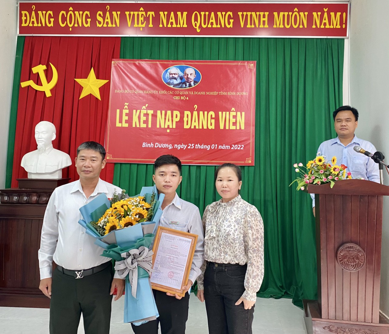 Sau gần hai năm được bồi dưỡng, xác minh, ngày 17/01/2022, Đảng ủy khối các Cơ quan & Doanh nghiệp tỉnh Bình Dương đã ký Quyết định kết nạp Đảng đối với Ông Nguyễn Đình Tân-GSNM nhà máy Công ty CP Sáng Ban Mai. Ngày 25/01/2022, Chi bộ 4 đã tổ chức Lễ kết nạp Ông Nguyễn Đình Tân-GSNM của SBM vào Đảng Cộng sản Việt Nam.