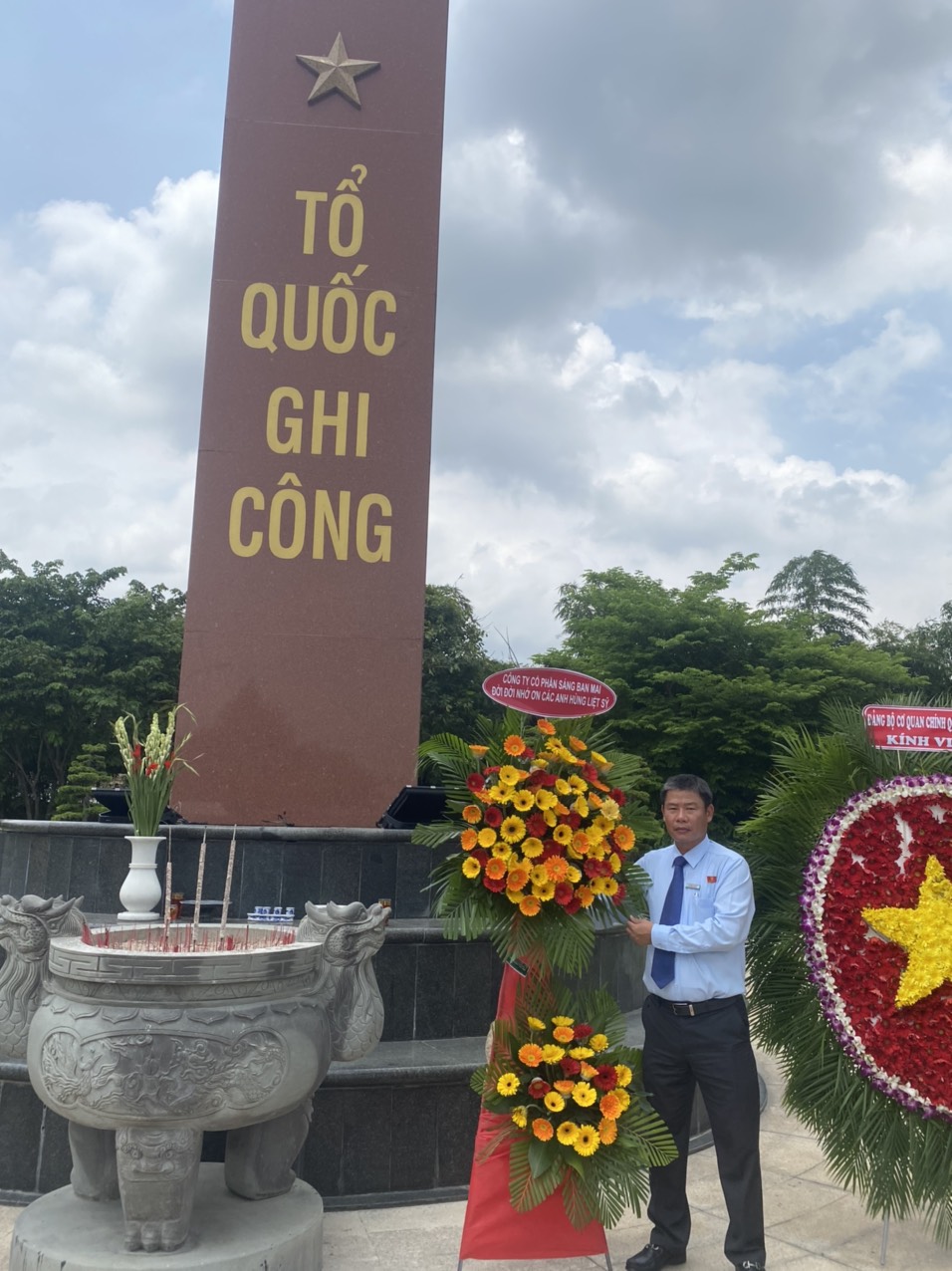 CB-CNV Công ty CP Sáng Ban Mai do Tổng Giám Đốc Trần Thành Trọng dẫn đầu thành kính dâng lên các Anh những nén hương và những bông hoa tươi thắm với lòng biết ơn sâu sắc. Mong các Anh phù hộ cho đất nước ta ngày càng phát triển, phù hộ cho Công ty CP Sáng Ban Mai phát triển ngày càng lớn mạnh.