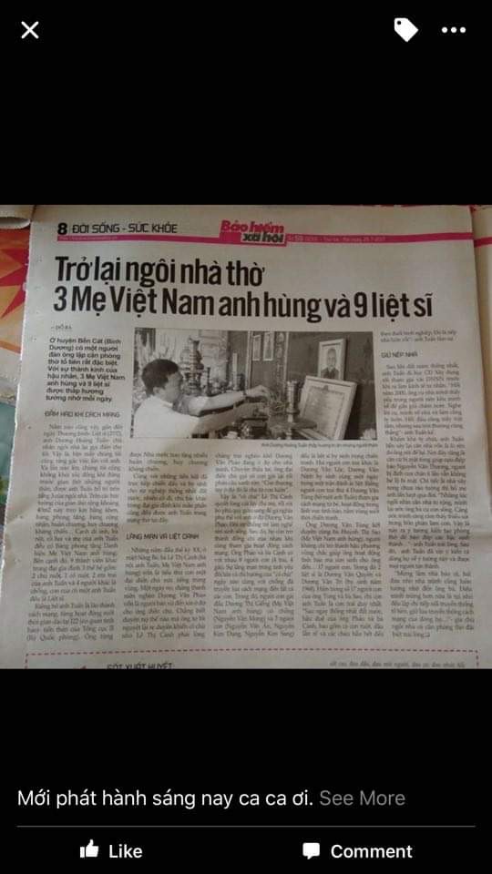 Kỷ niệm 75 năm ngày Thương binh Liệt sỹ, sáng ngày 26/7/2022, TGĐ SBM Trần Thành Trọng đã cùng lãnh đạo và nhân dân tỉnh Bình Dương viếng Nghĩa trang Liệt sỹ tỉnh. Tại Tx Bến Cát, TGĐ đã đến thăm hỏi gia đình anh Dương Hoàng Tuấn và dâng hương tưởng nhớ Mẹ Việt nam anh hùng và các Anh hùng Liệt sỹ. Tại đây, gia đình anh Tuấn đang thờ ba Mẹ Việt Nam anh hùng và chín Anh hùng Liệt sỹ hy sinh trong hai cuộc kháng chiến của dân tộc.