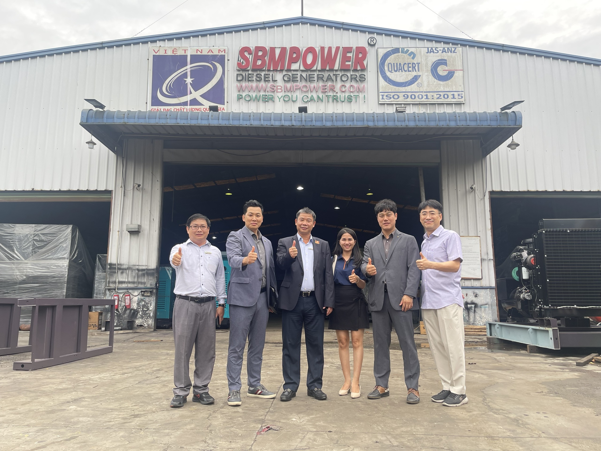 TGĐ SBM đã giới thiệu thực tế với đoàn về các sản phẩm mà SBM đã và đang sản xuất. Ông Choi cùng các thành viên trong đoàn rất tượng với những sản phẩm Máy phát điện công suất cao mang thương hiệu Việt Nam do SBM sản xuất, lắp ráp.