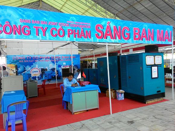 Đến với triển lãm lần này Hiệp hội cơ điện tỉnh Bình Dương được ban tổ chức hỗ trợ 10 gian hàng, trong đó công ty cổ phần Sáng Ban Mai nhận 4 gian, được SBM sử dụng trưng bày các sản phẩm máy phát điện như: KUBOTA 5.5KVA, ISUZU 40KVA, DOOSAN 220KVA, bộ chuyển nguồn tự động (ATS). Đây cũng là dịp để SBM giới thiệu một số thành tích đạt được, đặc biệt là các dự án lớn đã làm nên tên tuổi của SBM trong lĩnh vực Máy phát điện.
