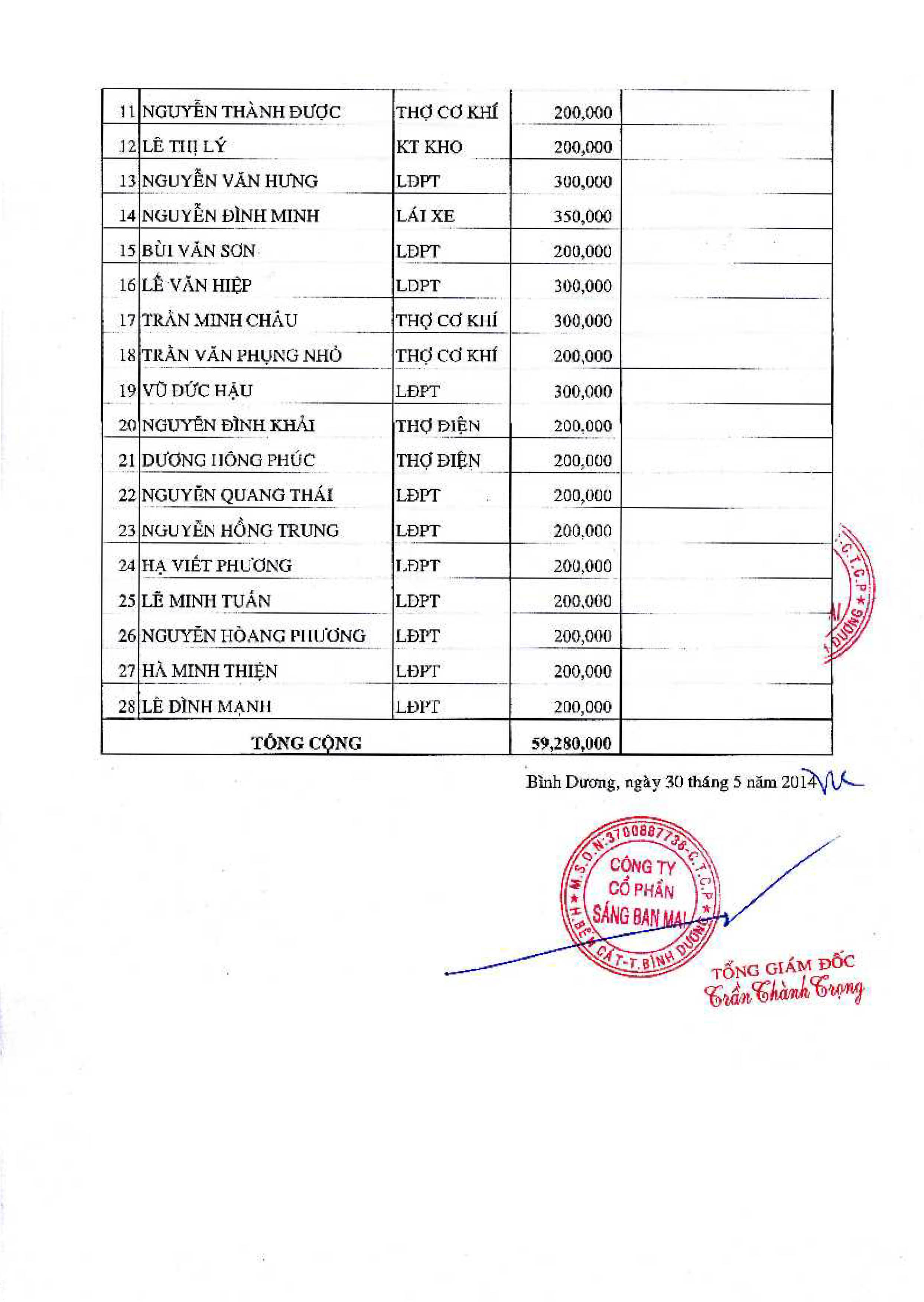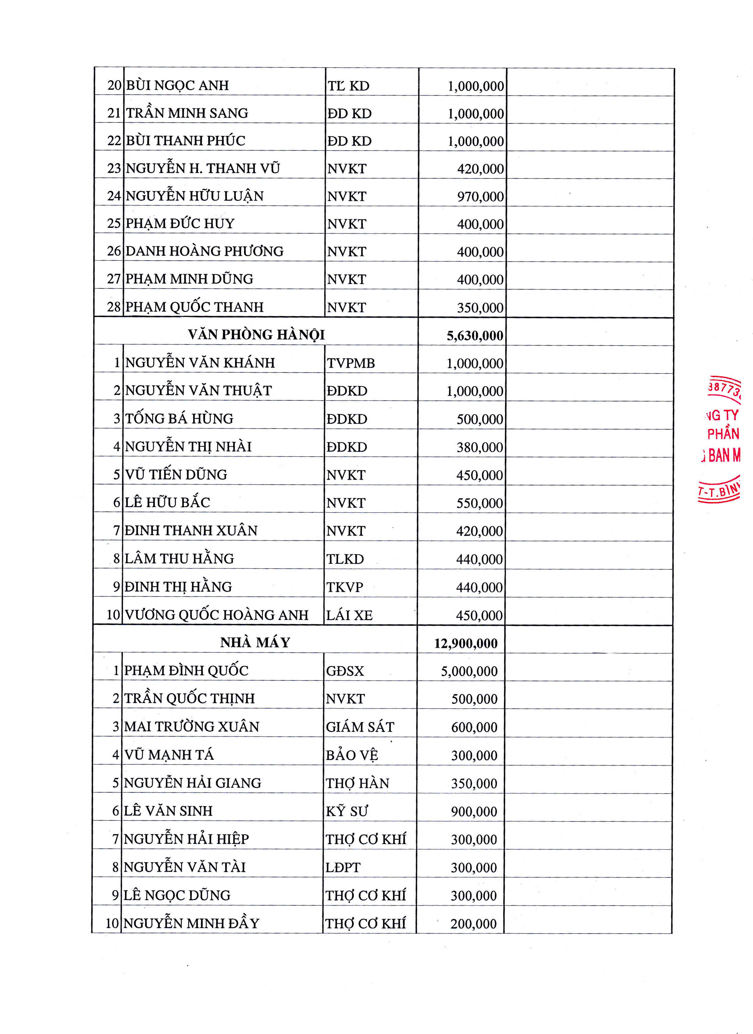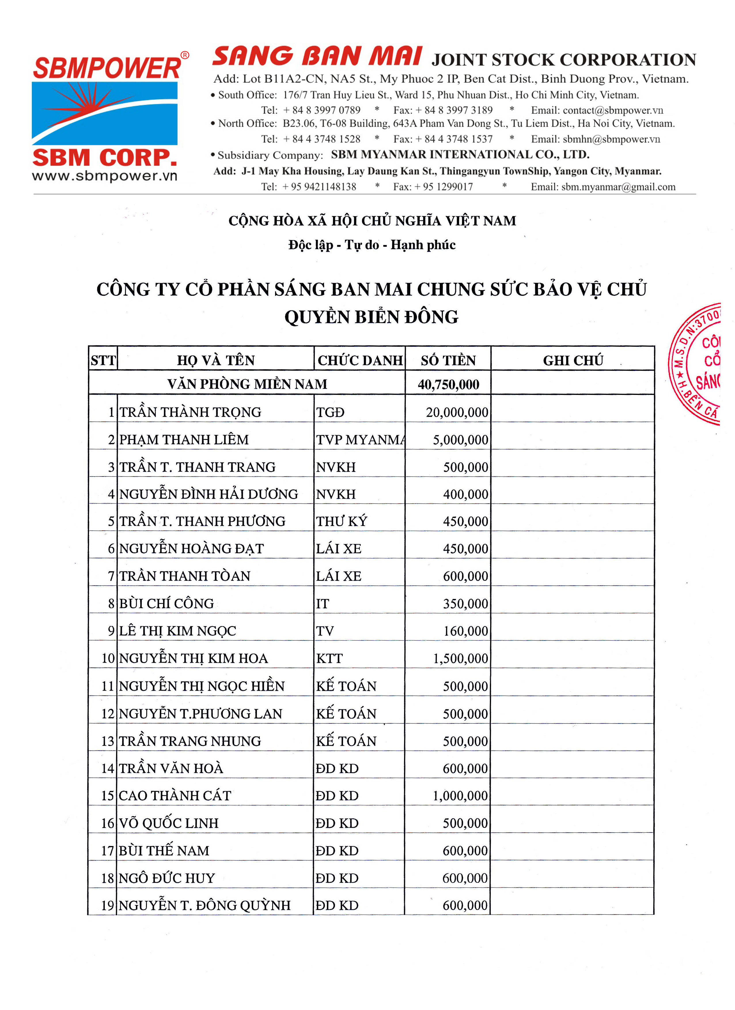 Danh sách CB-CNV công ty đóng góp vào chương trình
