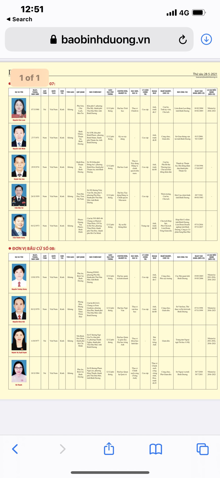 Ngày 27/5/2021, UBBC tỉnh Bình Dương đã ban hành Nghị quyết số 132/NƯ-UBBC công bố Kết quả bầu cử và Danh sách 72 người trúng cử Đại biểu HĐND tỉnh Bình Dương nhiệm kỳ 2021-2026.