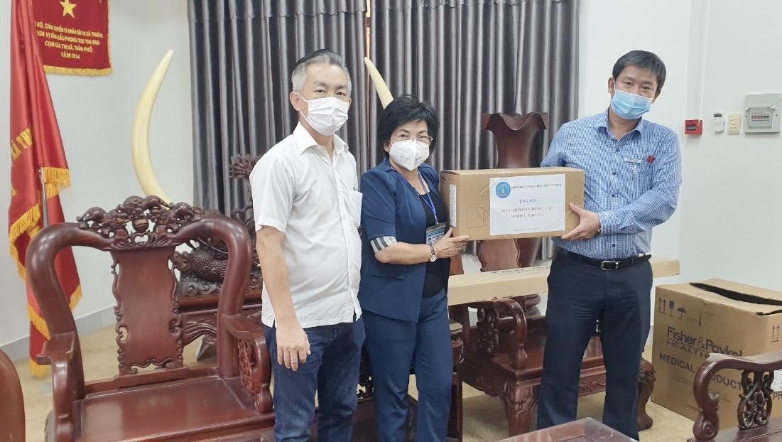 Riêng trong ngày 5-8, Hiệp hội Cơ điện Bình Dương đã hỗ trợ, trao tặng 1 máy thở oxy dòng cao cho Trung tâm Y tế TP.Thuận An. Đây là loại máy thở oxy dòng cao nhãn hiệu AIRVO2 (Newzeland) trị giá 125 triệu đồng.