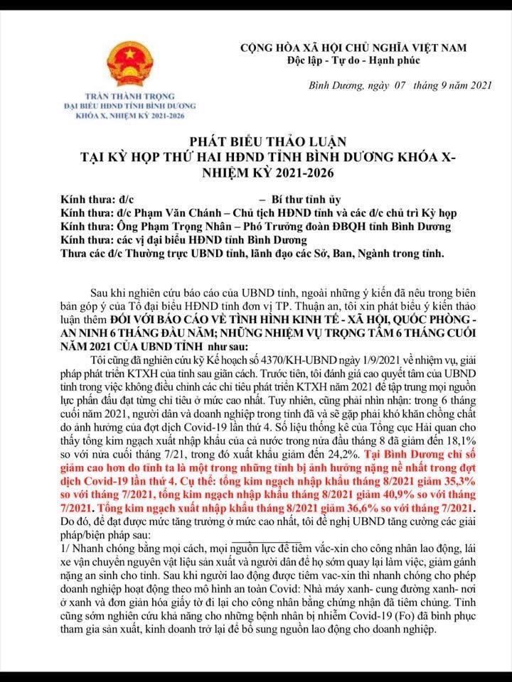Tất cả lãnh đạo cùng toàn Hệ thống chính trị , mọi lực lượng trong và ngoài tỉnh Bình Dương vừa trải qua 75 ngày chống dịch liên tục và căng thẳng. Trong đầu, lúc báo cáo trước HĐND vẫn còn những yếu tố “ phong toả, đông cứng, F0…”