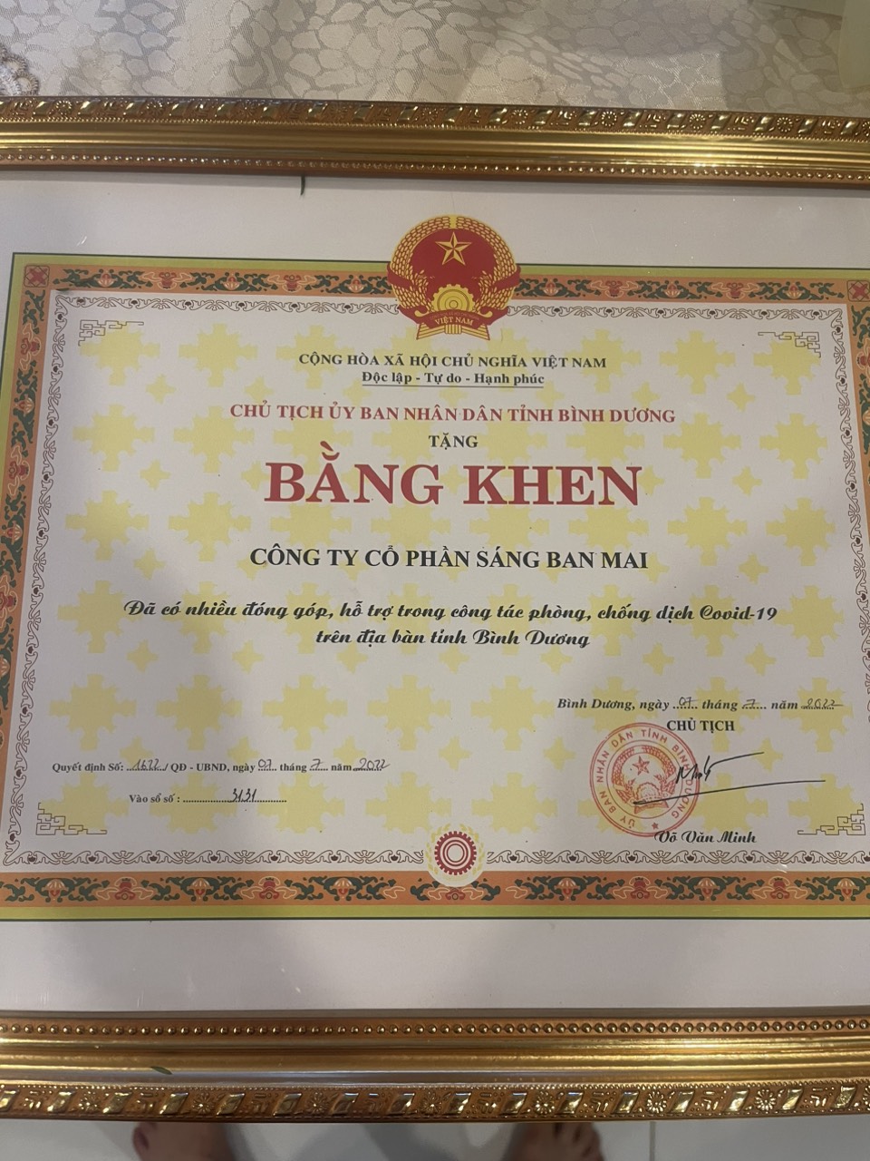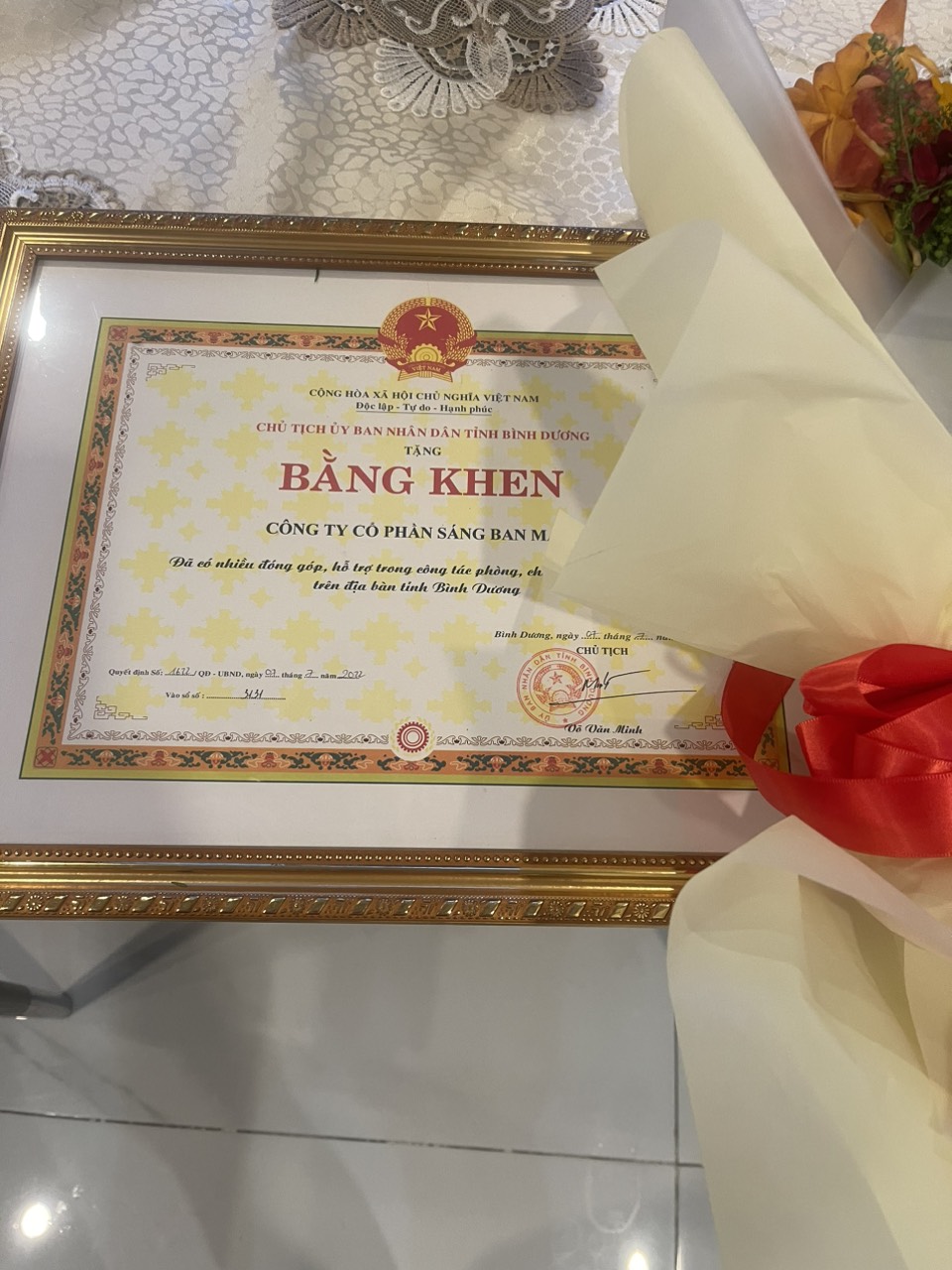 KỶ NIỆM NGÀY DOANH NHÂN VIỆT NAM, SBM ĐƯỢC CHỦ TỊCH UBND TỈNH BÌNH DƯƠNG TẶNG BẰNG KHEN VÌ CÓ NHIỀU ĐÓNG GÓP HỖ TRỢ CÔNG TÁC PHÒNG CHỐNG COVID-19 TRONG NĂM 2021-2022.