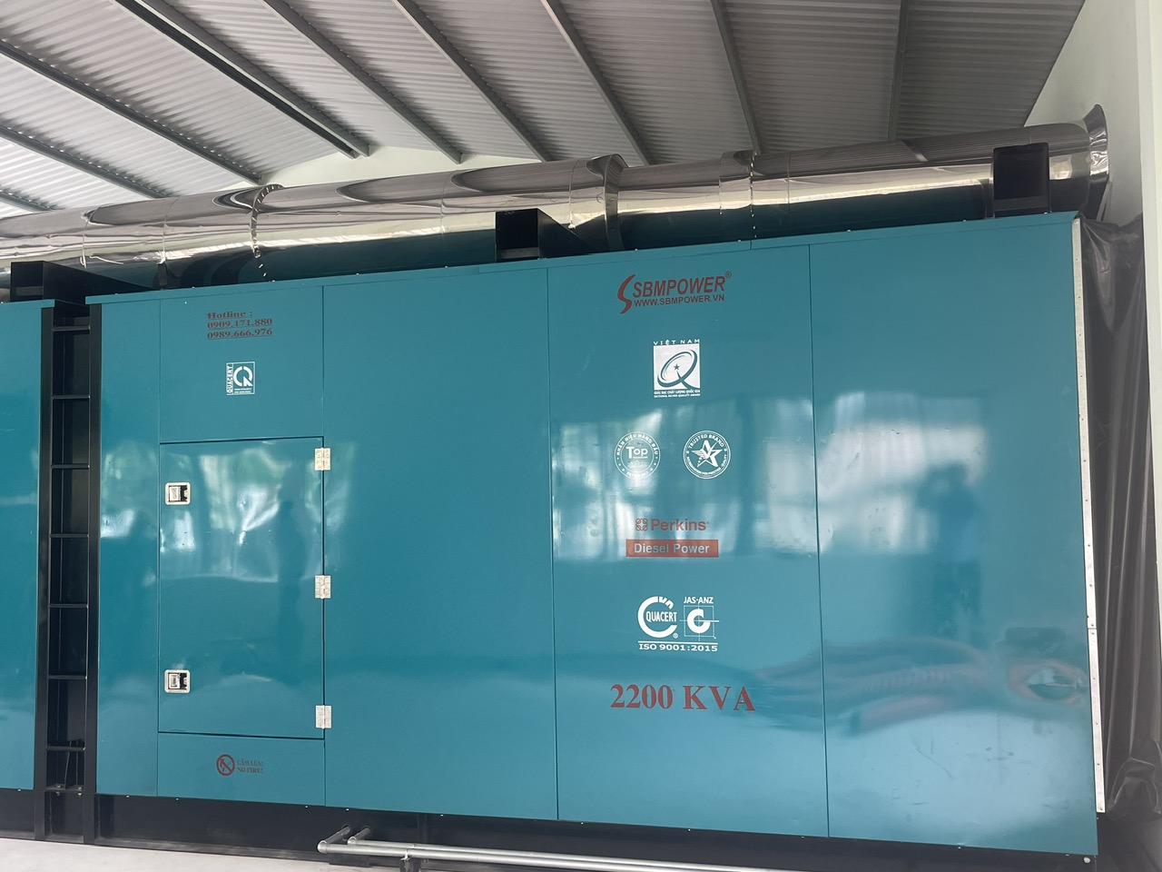 THÔNG SỐ CHÍNH: TP2200S: CÔNG SUẤT TỐI ĐA 2200KVA, 400/230V, 1500VP/, 50HZ. ĐỘNG CƠ PERKINS 4016 TAG2A - XUẤT XỨ TỪ ANH; ĐẦU PHÁT LEROYSOMER LSA 52.3S6- XUẤT XỨ TỪ CH PHÁP; HỆ THỐNG ĐIỀU KHIỂN DEEPSEA 7320MKII, XUẤT XỨ TỪ ANH; ATS DÙNG CÁC MÁY CẮT KHÔNG KHÍ MITSUBISHI-XUẤT XỨ TỪ NHẬT. TỔ HỢP SẢN XUẤT- LẮP RÁP BỞI SBM, ĐẠT TCVN 9729:2013.