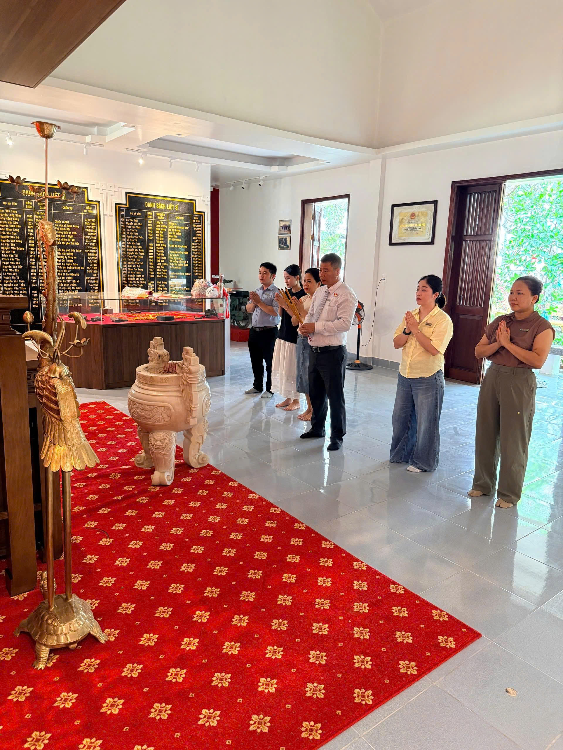 Trong không khí trang nghiêm, đoàn đã thành kính dâng hoa và thắp nén tâm hương để tri ân công lao biển trời của 162 người con ưu tú đã ngã xuống qua các thời kỳ kháng chiến chống Pháp, Mỹ và bảo vệ biên giới Tây Nam.